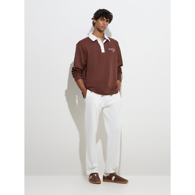 Carved in a relaxed silhouette, this brown sweatshirt from Studiofit blends comfort with casual appeal. Its breathable composition makes it ideal for everyday wear, while the polo collar, three-button fastening, and full sleeves offer a refined finish.