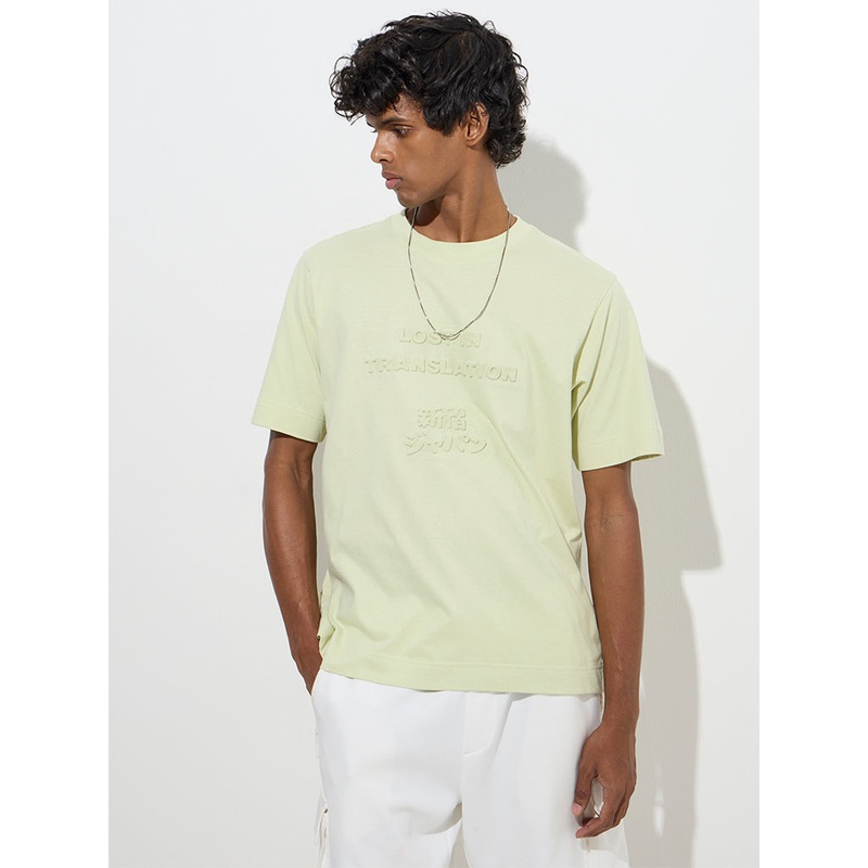 This lime t-shirt from Studiofit is fashioned with embossed text prints for a subtle yet stylish touch. Made from a cotton-rich fabric in a relaxed silhouette, it is designed with a round neck and half sleeves.