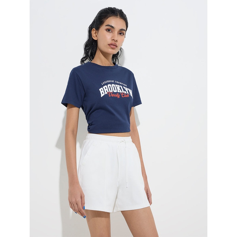 Studiofit Navy Text Printed Cotton-Blend T-Shirt