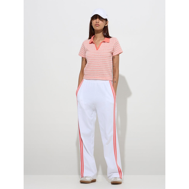 Studiofit Orange Striped Knit-Textured Polo T-Shirt