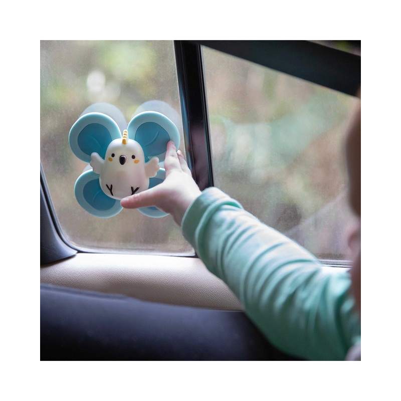 Designed to encourage fine motor skills, sensory play and cause-effect learning in infants and toddlers Sensory Spinners feature a trio of cute Aussie animals each with a two, three or four paddle spinner. Contours and textures encourage small hands to explore and touch. A strong suction cup behind each animal allows easy attachment to any smooth non-porous surface (think bathtubs, tiles, high chairs, mirrors, fridges and car windows). The spinner sticks firmly allowing super steady spins and independent play. Listen out for the rattle sound too.