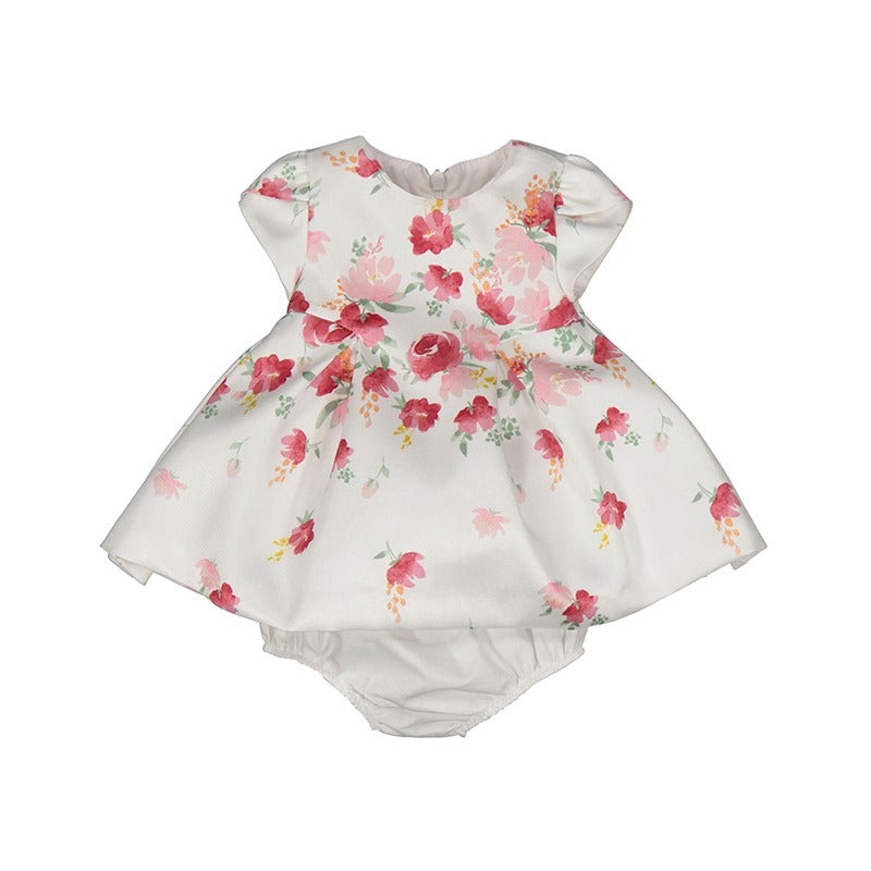 Two piece set for newborn made up of a dress with matching knickers.Short sleeved Dress for newborn. Opening on the back with an invisible zip. Patterned design. Item belonging to our more elegant and exclusive collection used to dress the little ones on s
