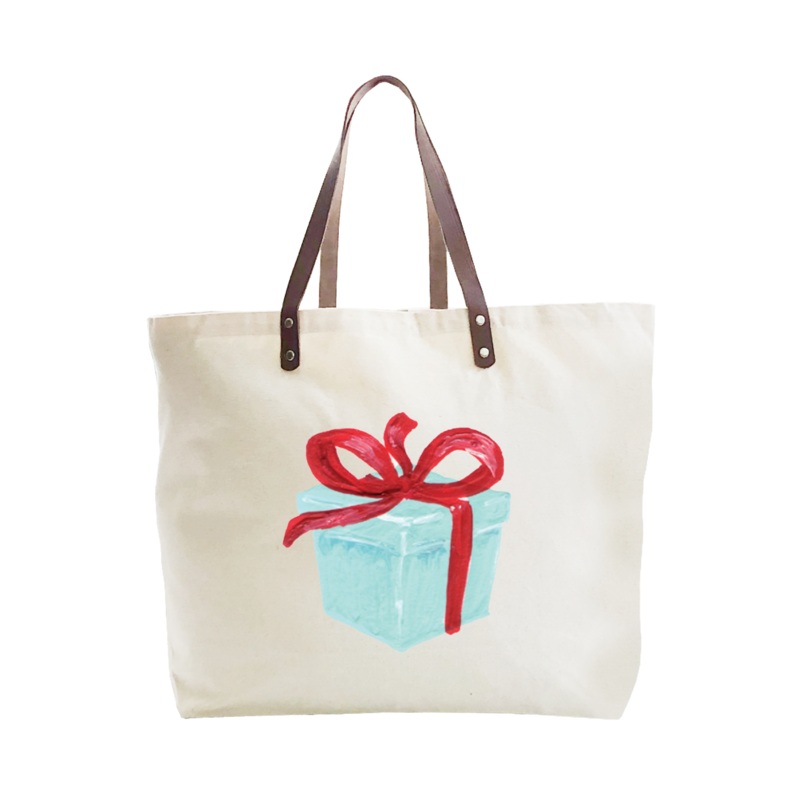 Large cotton canvas tote with leather handle is 22" x 15" x 5.5" and looks great with our original Tina Labadini Designs art. Our stylish totes are fun accessories and make great gifts.