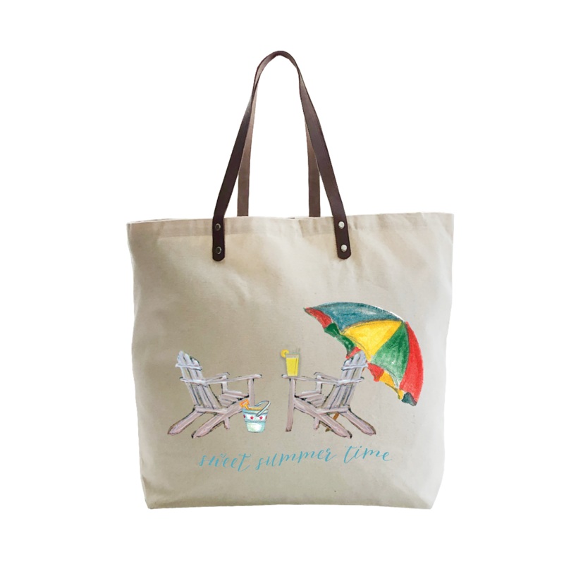 Large cotton canvas tote with leather handle is 22" x 15" x 5.5" and looks great with our original Tina Labadini Designs art. Our stylish totes are fun accessories and make great gifts.