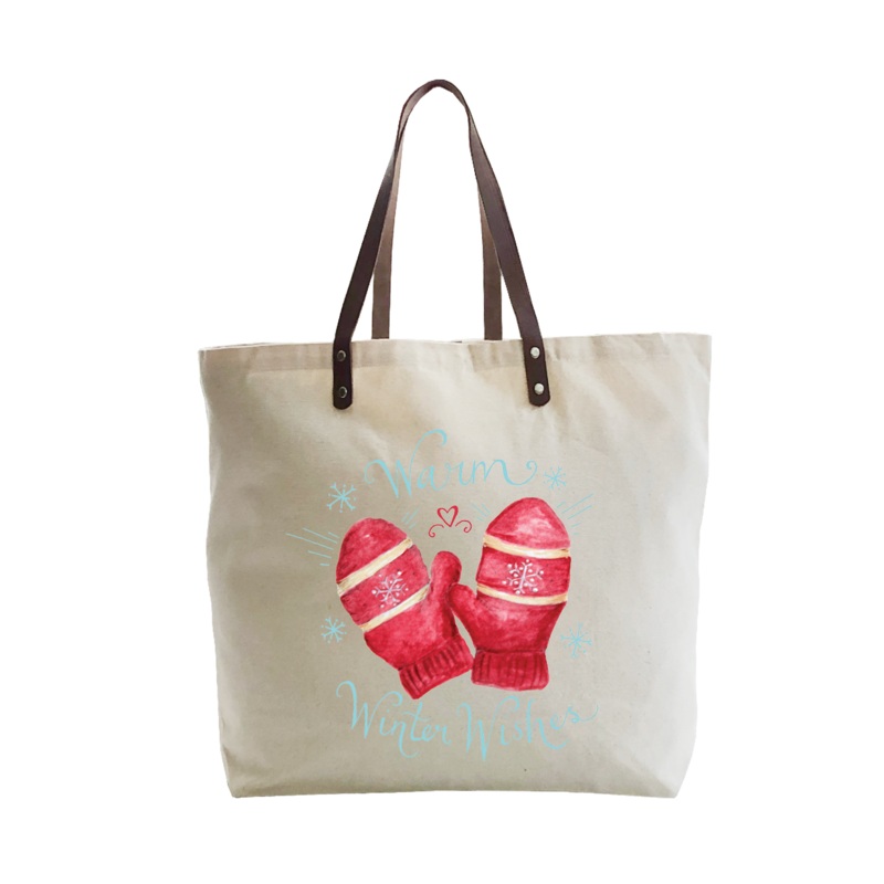 Large cotton canvas tote with leather handle is 22" x 15" x 5.5" and looks great with our original Tina Labadini Designs art. Our stylish totes are fun accessories and make great gifts.