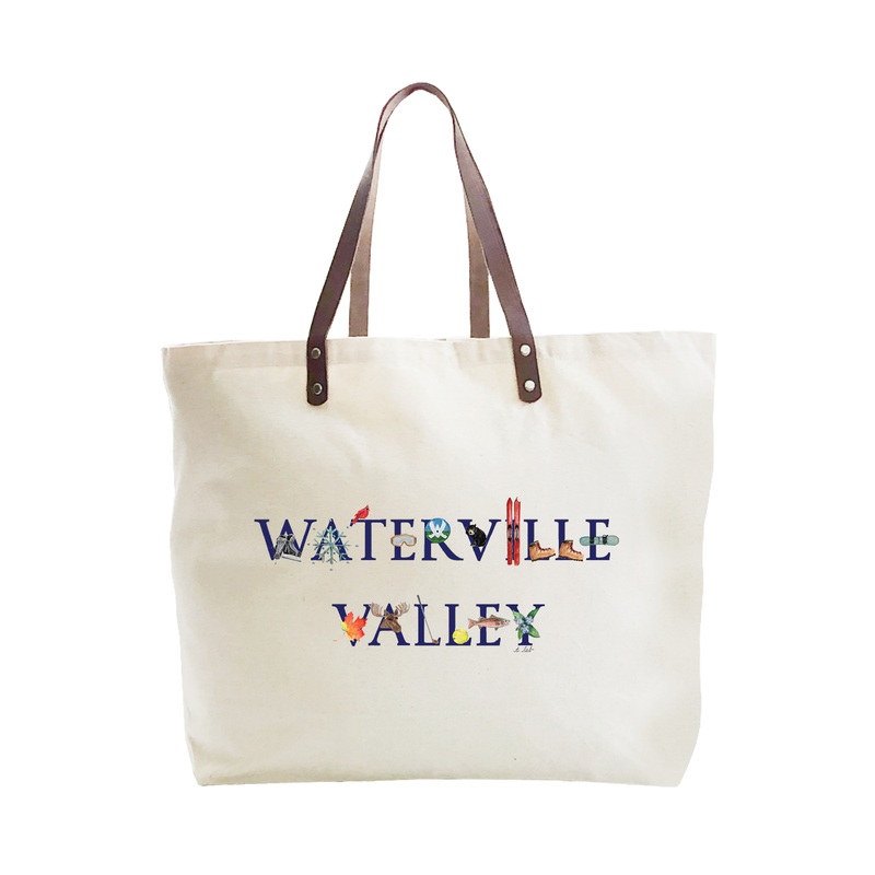 Large cotton canvas tote with leather handle is 22" x 15" x 5.5" and looks great with our original Tina Labadini Designs art. Our stylish totes are fun accessories and make great gifts.