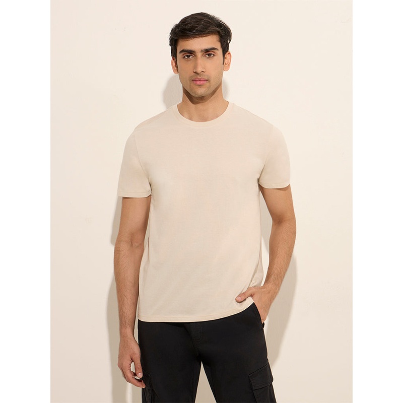 This slim-fit t-shirt by WES Casuals is made from pure-cotton, offering ultimate comfort and style. It is fitted with a round neck and short sleeves and comes in a neutral beige hue.