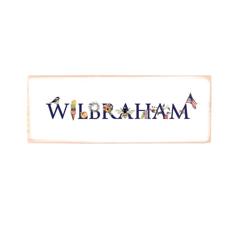 Prints on wood blocks in your choice of two sizes: 9x3 inches or 16x4 inches. Maple wood is hand painted white and slightly distressed then printed with our original Tina Labadini designs art.