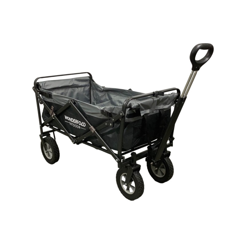 Condition: Open Box "This easy to use, foldable utility wagon features one step folding and unfolding. The adjustable active steering handle will never hit the ground and this wagon stands even when folded. Multiple mesh pockets let you take everything on