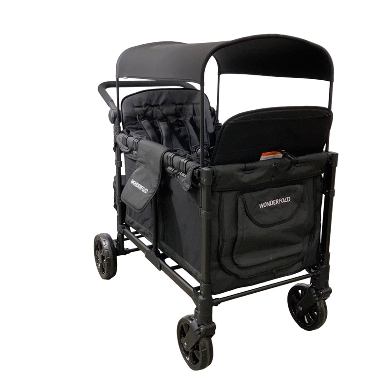 Condition: Open Box "This wagon is amazing! It can hold up to 4 kids and includes harnessed seats with a large canopy. If you want to use without seats, the seats are removable. There is a sturdy mattress style bottoms for naps. Canopy provides UV protecti