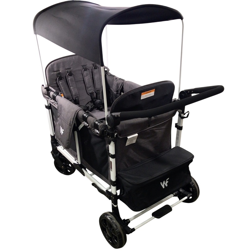 Wonderfold W4 Luxe Quad Stroller Wagon, Charcoal Grey with White Frame, 2024