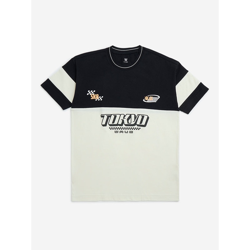 Give your son a comfortable and stylish t-shirt like this black tee from Y&F Kids. Fashioned with a crew neckline, this pure-cotton separate showcases text prints at the front over the dual-toned profile for added appeal.