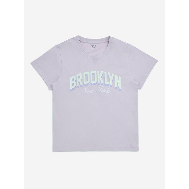 Y&F Kids Lilac Text Design Cotton T-Shirt