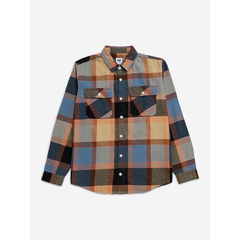This multicolour shirt by Y&F Kids features striking checkered prints. The regular fit garment is made in a cotton-rich blend. It includes a spread collar, button down front, full sleeves and two front flap pockets.