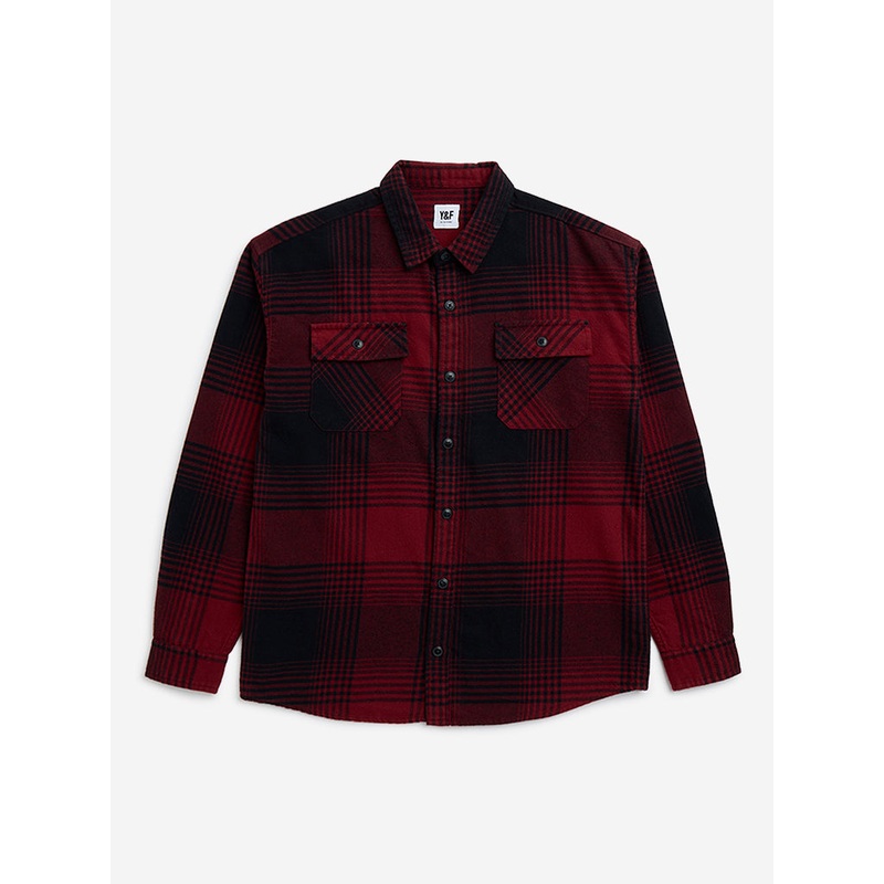 Y&F Kids presents this red shirt featuring checkered design. The pure cotton garment offers a regular fit frame and includes a camp collar, button down front, full sleeves and two front pockets.